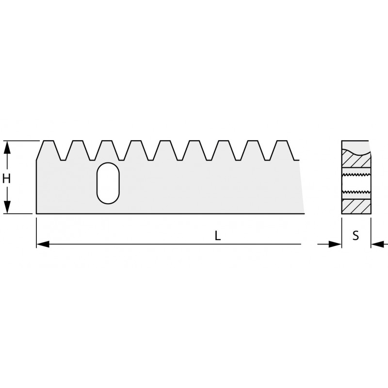 La crémaillère de référence 630/ZF2 est indispensable pour les portails coulissants motorisés. Mesurant 2000mm de long, 30mm de haut et une section de 12mm, elle offre robustesse et longévité. Son module 4 garantit une transmission efficace et fluide entre le moteur et le portail.